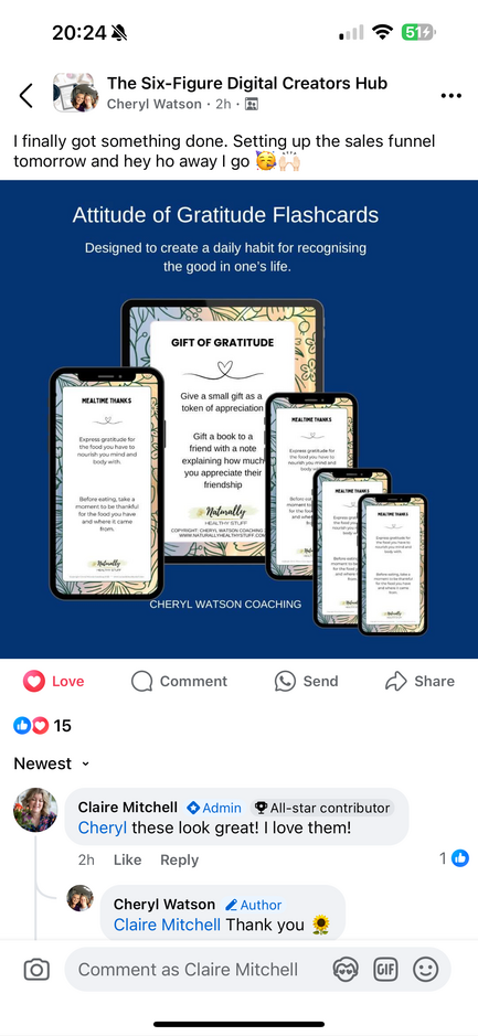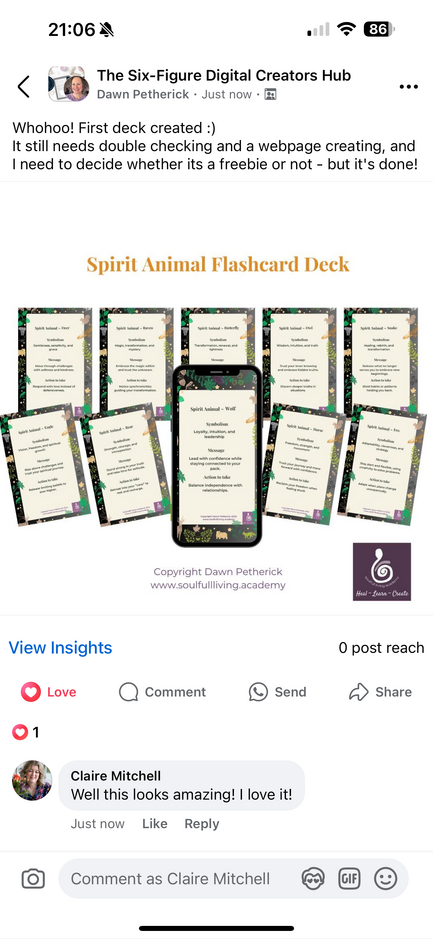 "Claire, this training has smashed down my own blocking walls to creating digital products. I've been with you a good few years now and have created some digital content but it's never sat right and felt clunky and awkward. With the Flashcard training it was so straightforward and easy to follow, I never knew I could do these things in Canva and I've had pro for about 4 years! The doors this has opened in my mind have shown me the way to achieve what I've been struggling with for ages. I can't thank you enough" Nicola