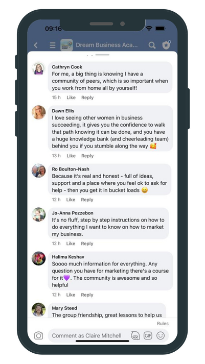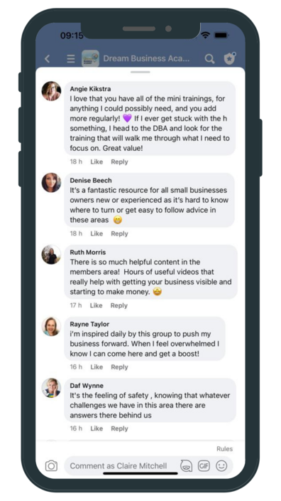 The Dream Business Academy is your place. It's where you can learn, ask questions (no such thing as a silly question in there) and get help.