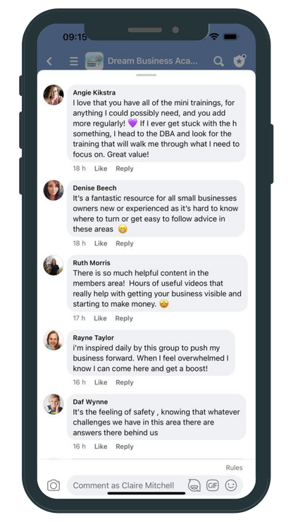 Well. This amazing resource exists. I created the Dream Business Academy for ambitious, determined, BUSY business owners so you can grow your business as quickly and easily as possible.