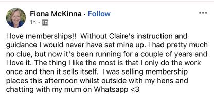 Claire, I just wanted to say a proper thank you. I feel like I’ve made more progress on this membership with you in a week than I would have in a year on my own. The way you simplify, keep pulling me back from rabbit holes, remind me where my focus needs to be, giving me clear actionable steps is exactly what I needed and exactly why you are called the membership Queen.